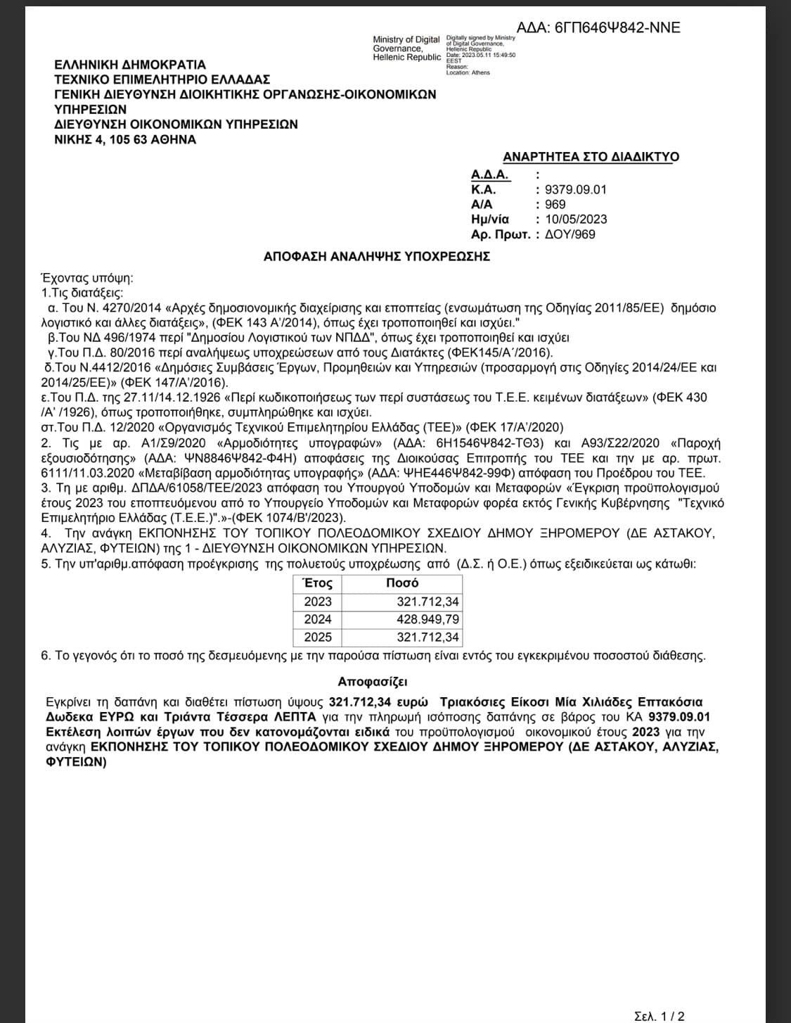 19 Ιούν Το ποσό του 1.072.374,47 € για το Τοπικό Πολεοδομικό Σχέδιο (Τ.Π.Σ) του Δήμου Ξηρομέρου.