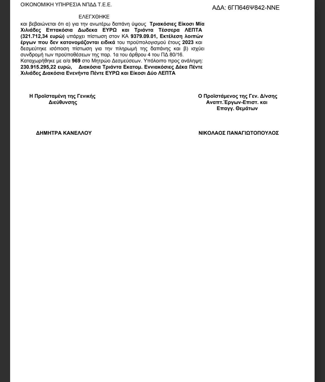 Η χρηματοδότηση είναι εξασφαλισμένη και προέρχεται από το χρηματοδοτικό Πρόγραμμα «Κωνσταντίνος Δοξιάδης» του Ταμείου Ανάκαμψης και Ανθεκτικότητας.